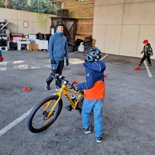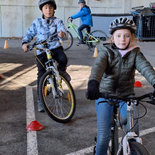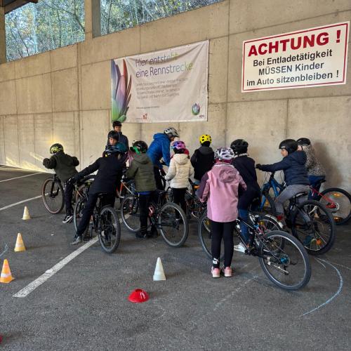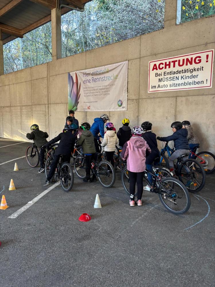 Sicheres Aufsteigen aufs Fahrrad, richtiges Losfahren und Bremsen, Vorbeifahren an Hindernissen ... das alles will geübt sein! Am Recyclinghof fuhren unsere Dritteler und Vierteler in einer sicheren Umgebung, um diese Dinge zu lernen! Ein großes DANKE an die Trainer!